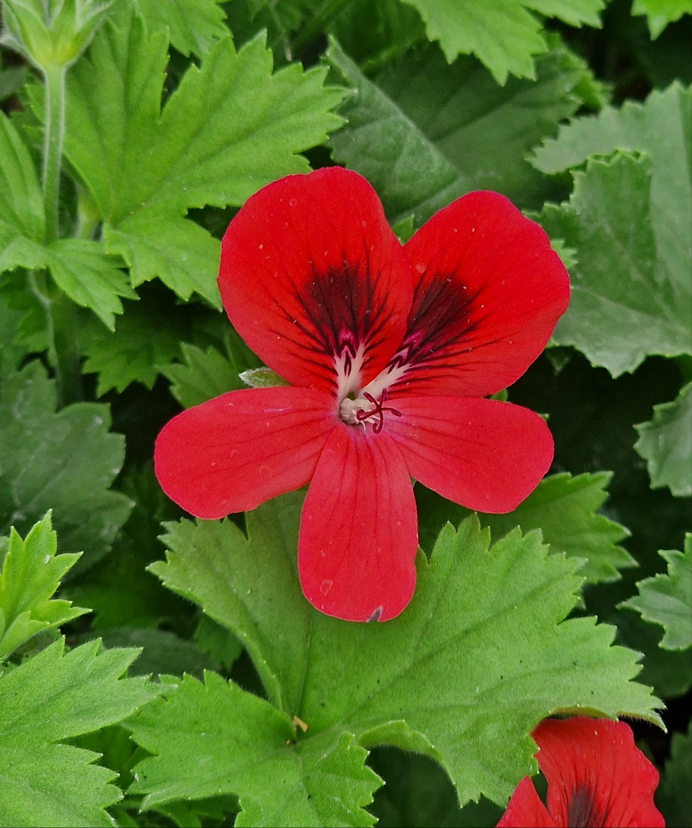 Leslie William Burrow is a wonderful Decorative Pelargonium that produces bright red flowers on a strong bushy plant.
