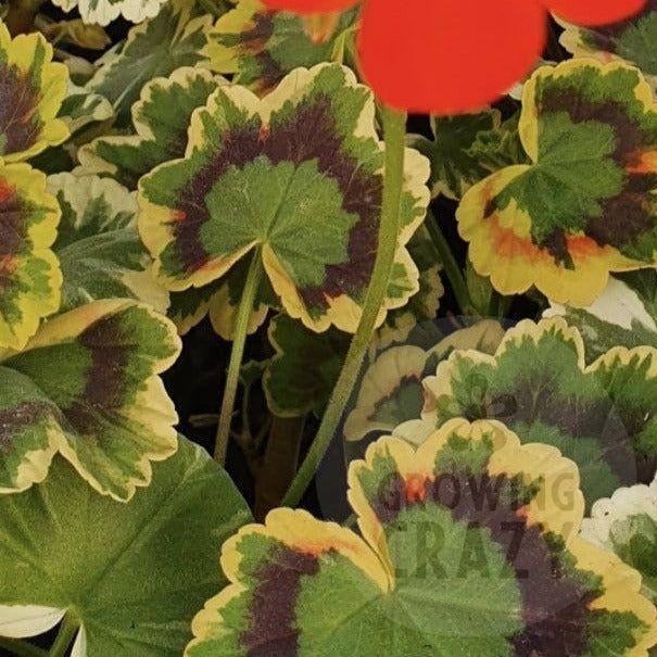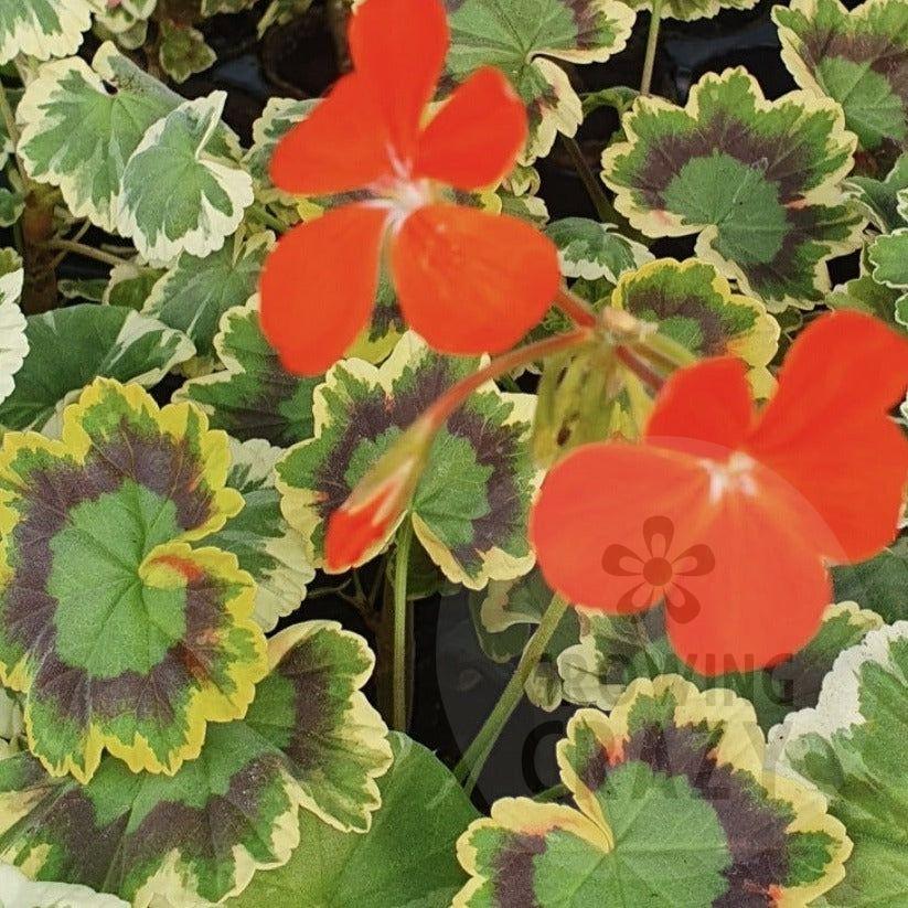 These fancy-leaf Zonal Pelargoniums (Geraniums) are primarily grown for their remarkable foliage that really sets them apart from others. They are particularly interesting and diverse in their colouring with most of their original forms of coloured and fancy leaved Pelargoniums (Geraniums) were created by mutations.