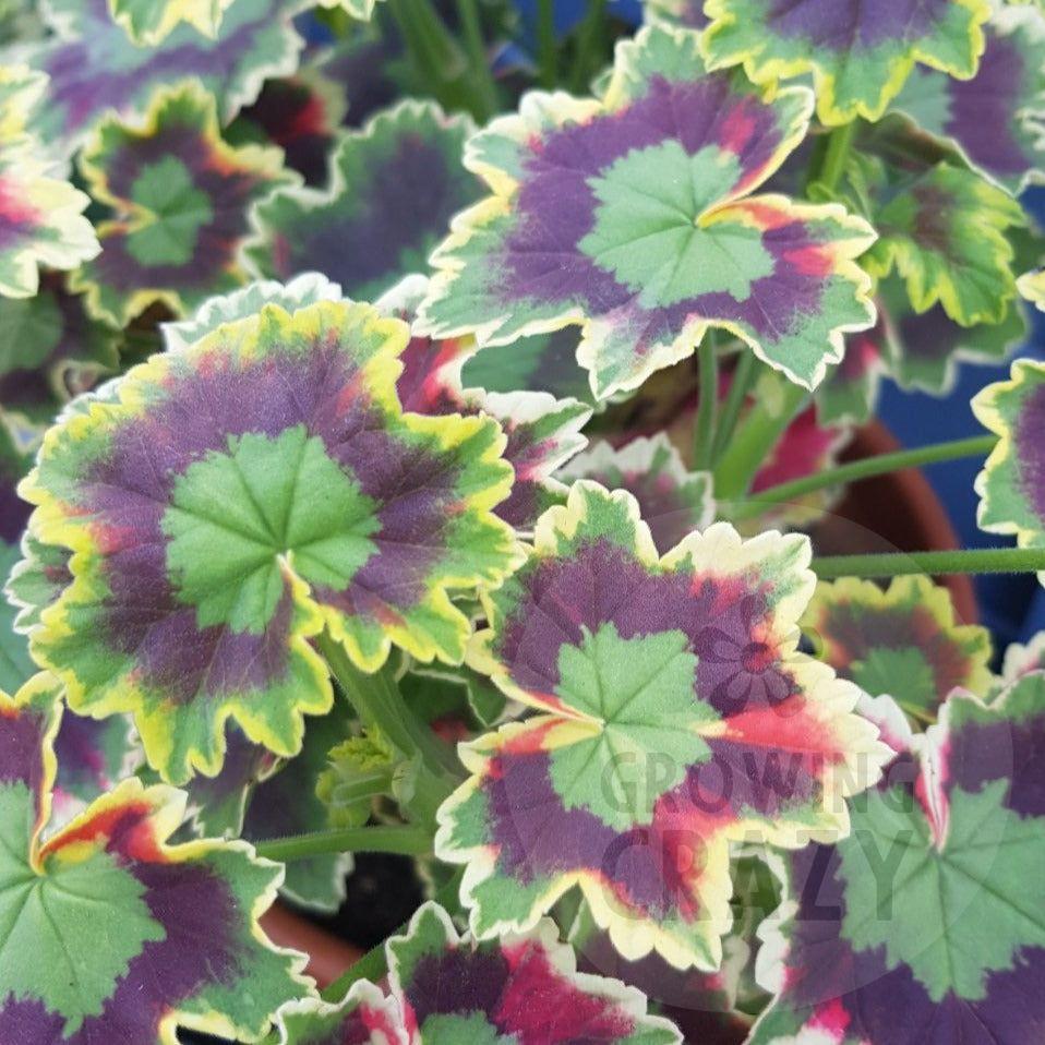 These fancy-leaf Zonal Pelargoniums (Geraniums) are primarily grown for their remarkable foliage that really sets them apart from others. They are particularly interesting and diverse in their colouring with most of their original forms of coloured and fancy leaved Pelargoniums (Geraniums) were created by mutations.